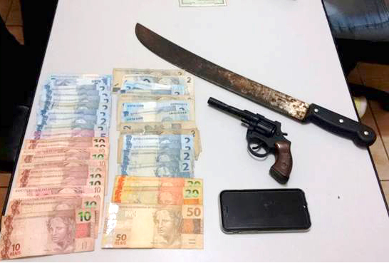 De acordo com a Polícia Militar, os menores invadiram o estabelecimento armados com um facão e uma arma de brinquedo, renderam o dono e levaram R$ 265,00 em dinheiro, além de um aparelho celular. Em seguida, segundo a polícia, a vítima ligou no número do celular roubado e foi atendido pelo rapaz de 20 anos, que exigiu uma quantia em dinheiro para devolver o aparelho.