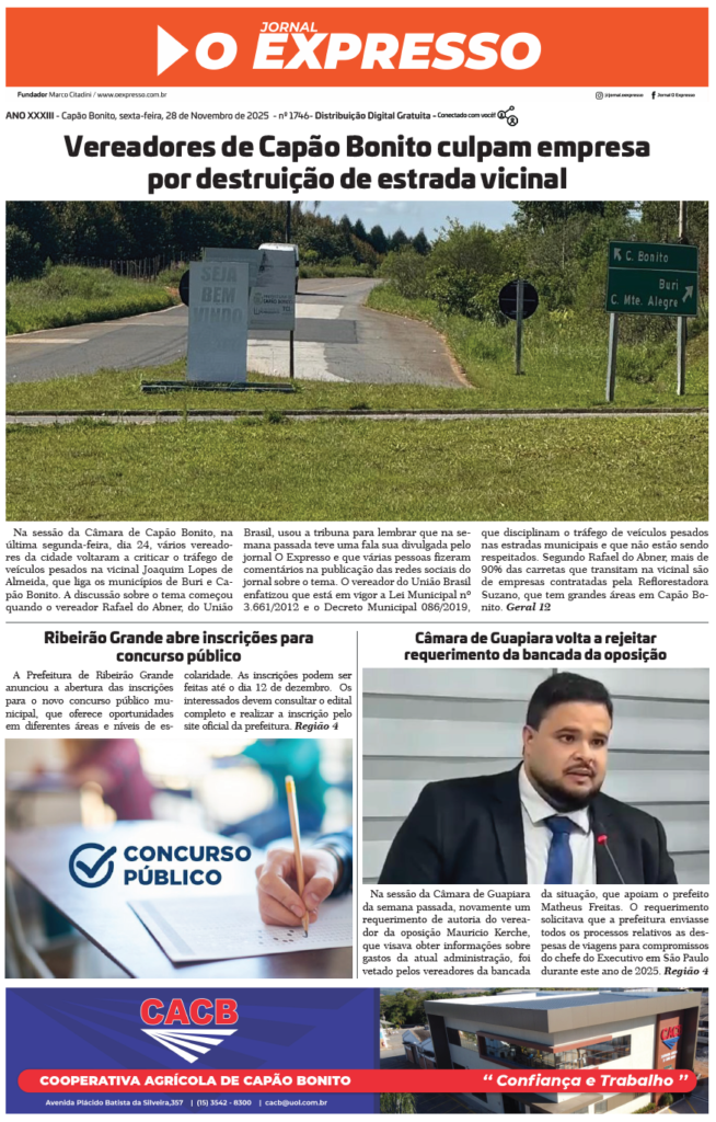 Visite o acervo digital do Jornal O Expresso com diversas edições de jornais antigos de Capão Bonito.