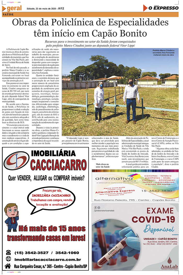 De acordo com o chefe do Poder Executivo, Capão Bonito solicitou ao Governo do Estado o credenciamento para a instalação de cinco leitos de atendimento aos pacientes da Covid-19.
