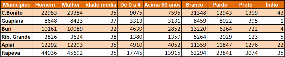 A reportagem de O Expresso pesquisou no Censo de 2022 os números referentes a sexo, raça, idades e índice de envelhecimento da população das cidades de Capão Bonito, Ribeirão Grande, Guapiara e Buri, e verificou também dados de cidades vizinhas, como Itapeva e Apiaí.