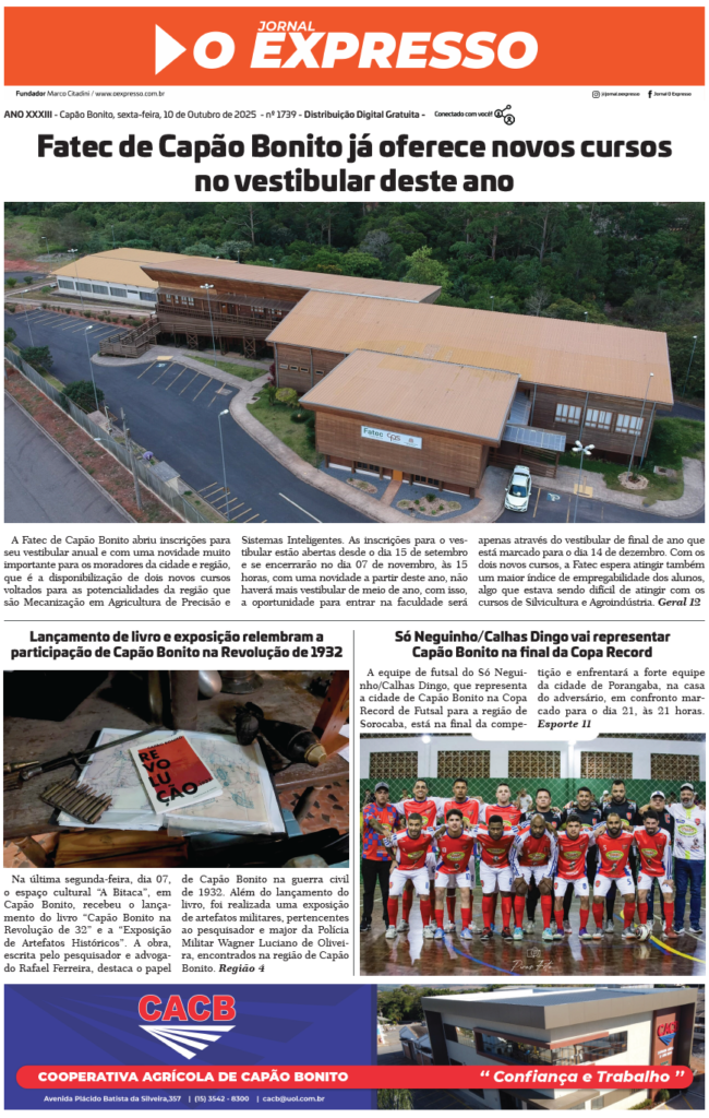 Visite o acervo digital do Jornal O Expresso com diversas edições de jornais antigos de Capão Bonito.