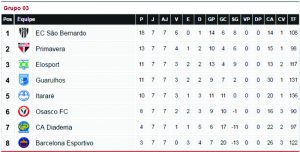 O G4 ainda é composto pelo Guarulhos que empatou com o Barcelona em 1 a 1 e chegou também a 11 pontos.