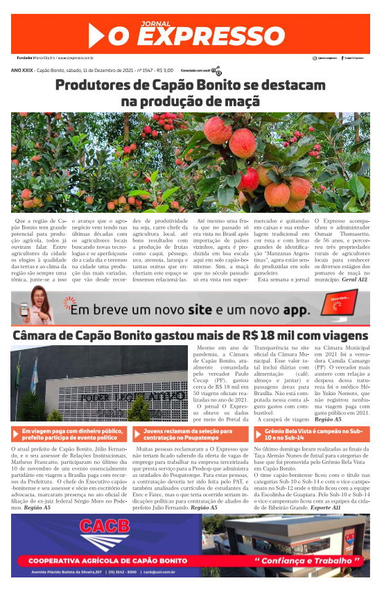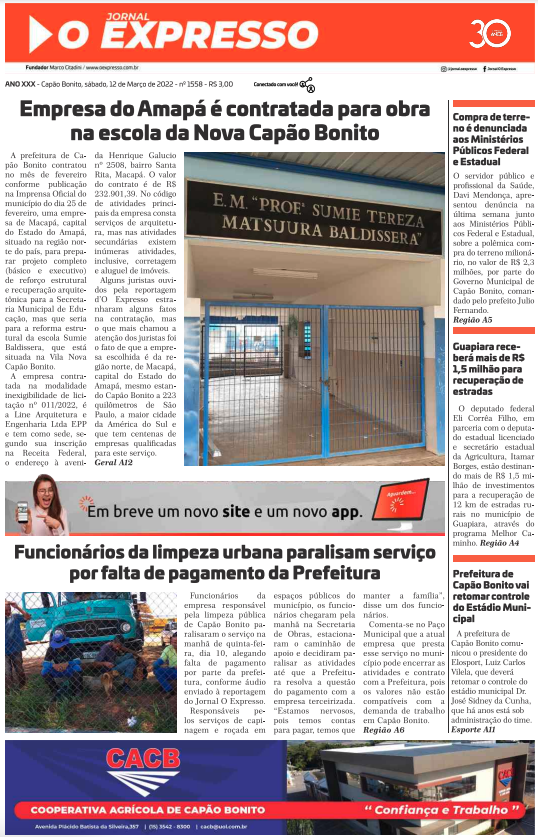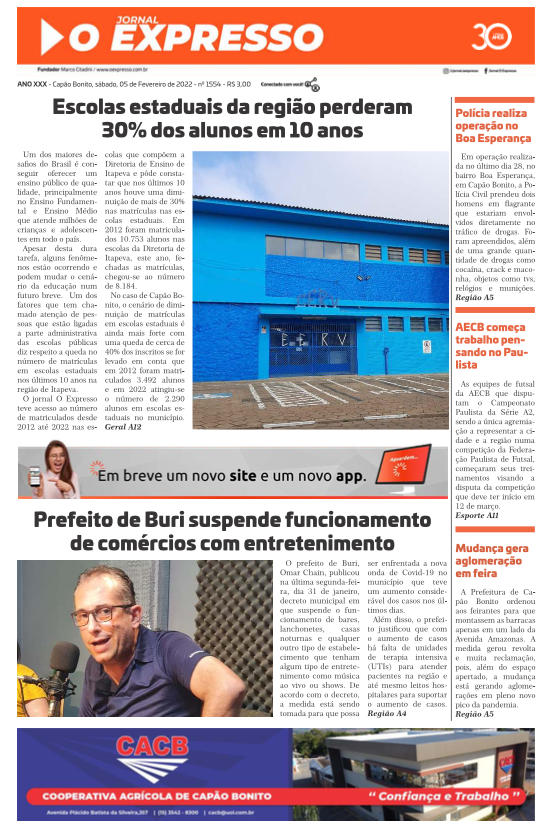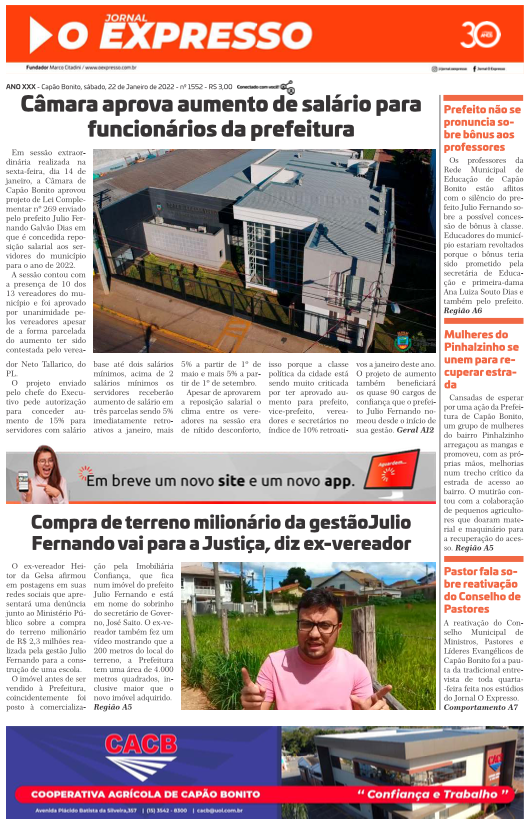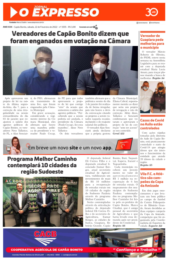 Visite o acervo digital do Jornal O Expresso com diversas edições de jornais antigos de Capão Bonito.