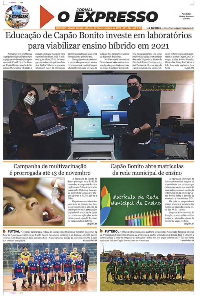 Edição 1494 – Educação de Capão Bonito investe em laboratórios para viabilizar ensino híbrido em 2021