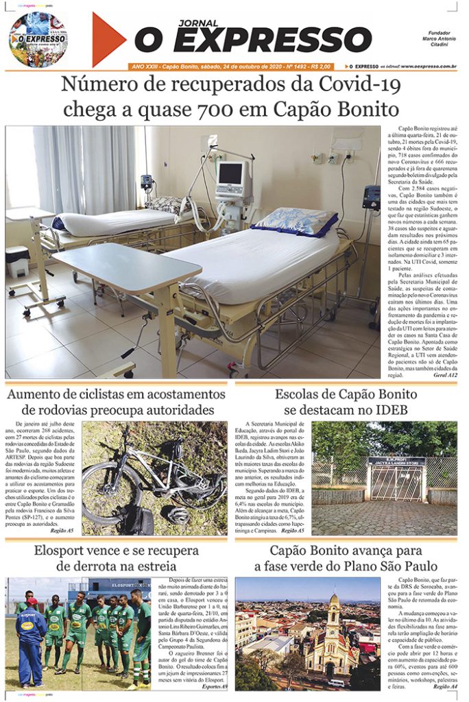 Edição 1492 – Número de recuperados da Covid-19 chega a quase 700 em Capão Bonito