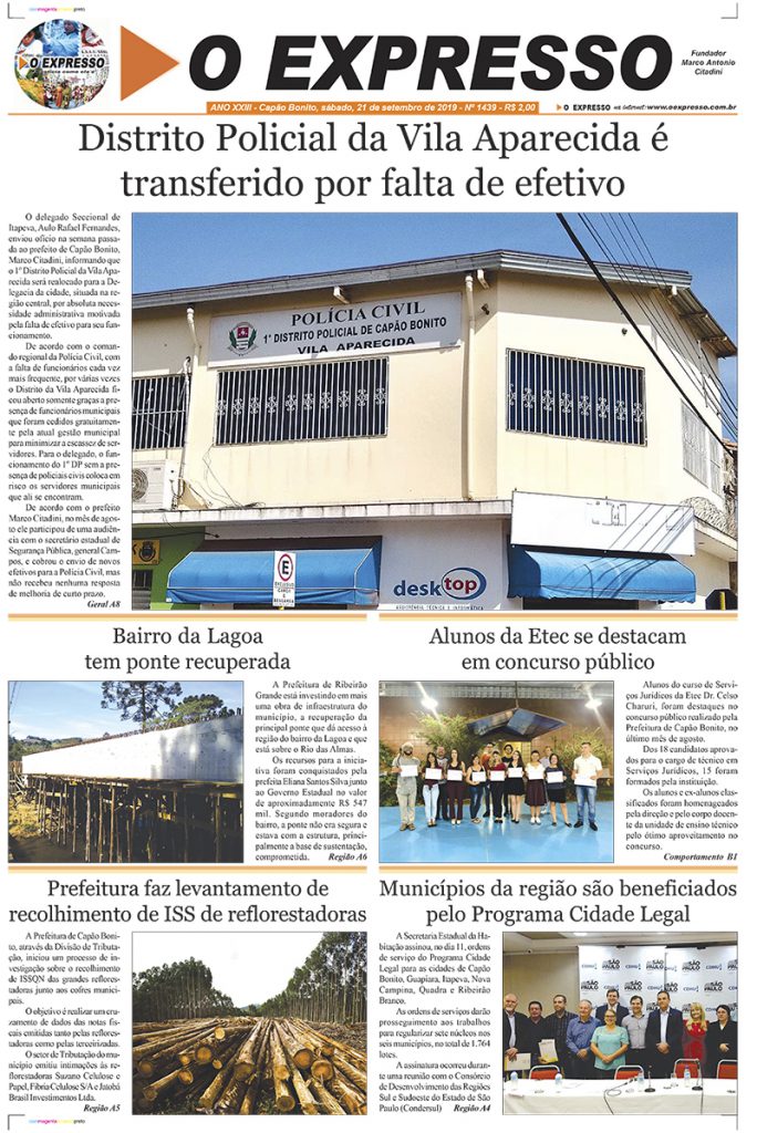 Edição 1439 – Distrito Policial da Vila Aparecida é transferido por falta de efetivo