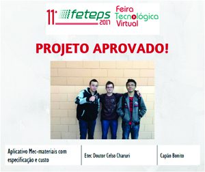 Entre os selecionados está o da Escola Técnica “Dr. Celso Charuri” de Capão Bonito – o Aplicativo Mec-Materiais com especificação e custo.