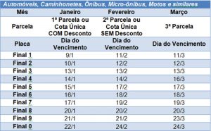 As datas de vencimento estão disponíveis para consulta no site da Secretaria da Fazenda e Planejamento e disponíveis no final deste texto.
