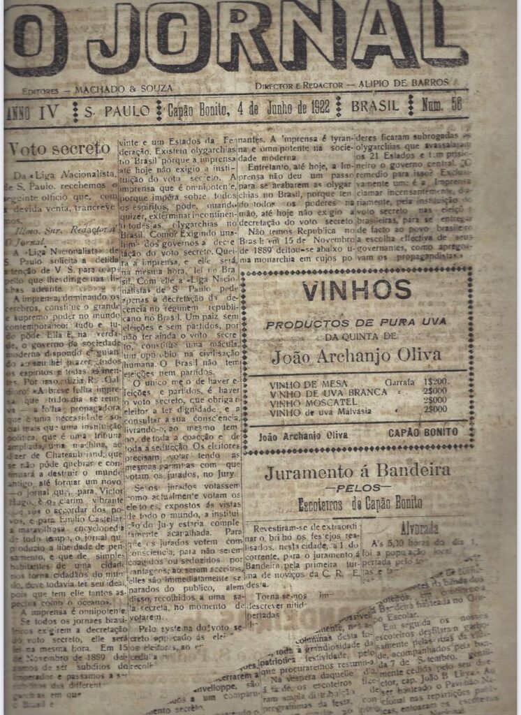 A edição desta semana da coluna O Expresso na História está trazendo para ficar disponível através do site de O Expresso a edição totalmente digitalizada e completa de O Jornal que circulou em Capão Bonito no dia 04 de junho de 1922.