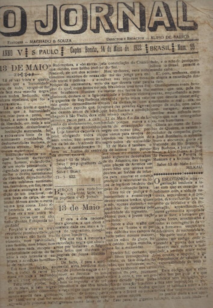 A coluna O Expresso na História desta semana disponibilizará para os leitores do jornal O Expresso, através do site do jornal, mais uma edição completa e totalmente digitalizada do semanário O Jornal, que circulou em Capão Bonito em 14 de maio de 1922.