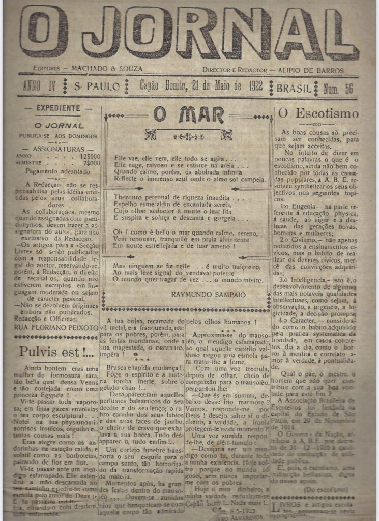 A coluna O Expresso na História desta semana disponibilizará através do site de O Expresso um exemplar completo e totalmente digitalizado de O Jornal que circulou em Capão Bonito em 21 de maio de 1922.
