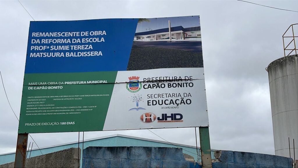A reforma da escola Sumie Baldissera, situada na Vila Nova Capão Bonito, está praticamente paralisada há semanas. A reportagem de O Expresso esteve no local por vários dias e constatou que existem apenas um ou dois funcionários que estariam no local para preservar a obra que está a cargo da empresa JHD Construções e Comércio Ltda, mas nota-se claramente que as obras não estão ocorrendo.