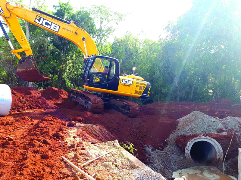 Além do serviço de terraple-nagem foram colocados no local tubos de concreto para canalizar as águas da chuva.