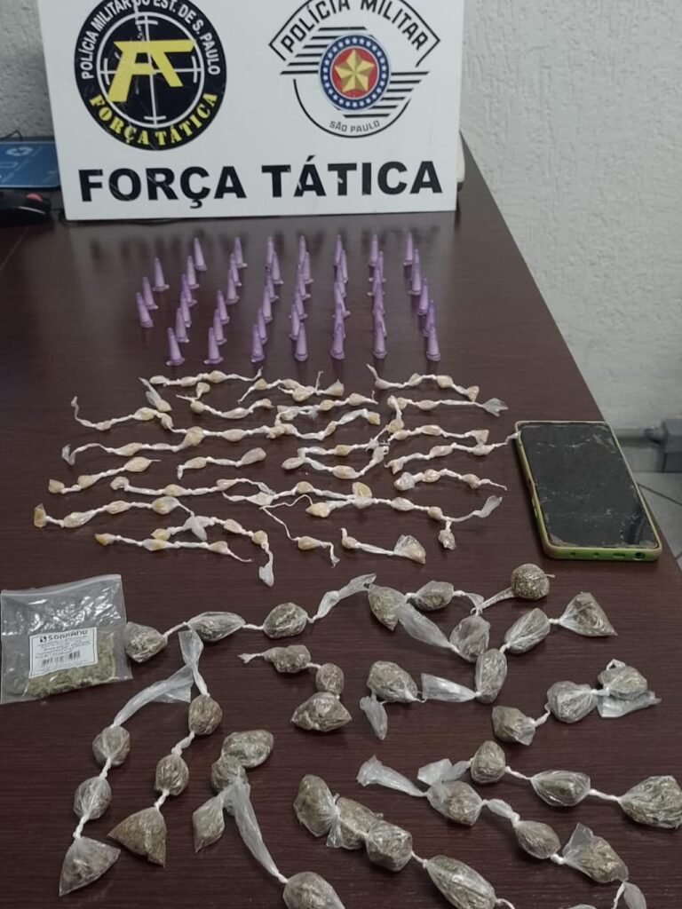 Ao todo foram apreendidos 01 aparelho celular, 0,045 Kg de maconha, 0,024 Kg de crack e 0,056 Kg de cocaína. O indivíduo foi conduzido ao Plantão Policial, onde permaneceu à disposição da Justiça.