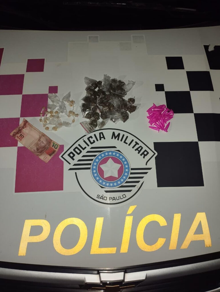 Na busca pessoal, foram localizadas 24 porções de crack, 21 porções de cocaína, 48 porções de maconha e R$ 10,00 em espécie.