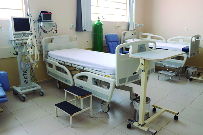 Dos cinco leitos de terapia intensiva, quatro estão ocupados. Na ala de enfermaria, 10 dos 11 leitos estão com pacientes da Covid-19